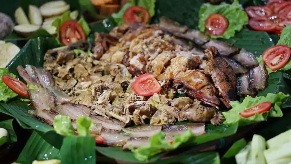 The most "soul" of the Nu ethnic group's pilaf is the roasted suckling pig in the middle. The elder brother of the village said that first you have to choose a two-month-old female suckling pig weighing about ten pounds, slaughter it, clean it and then marinate it. This process is very important. The taste of the suckling pig depends entirely on the marinating process. The secret recipe is unique and cannot be passed on to others!