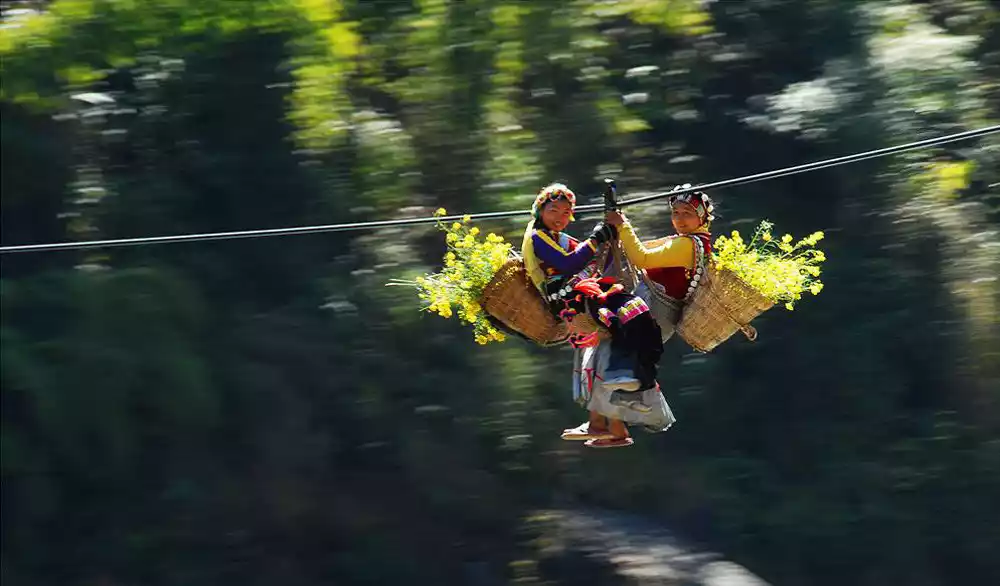 Nowadays, ziplines are more than just a means of transportation; tourists also enjoy ziplining across the Nu River. Tied to a thick rope, zipping across the roaring Nu River, surrounded by the rustling wind, the thrilling experience is so breathtaking that it was even dubbed the "Bridge of Wind" in a 1996 television documentary by Japan's NHK radio station.