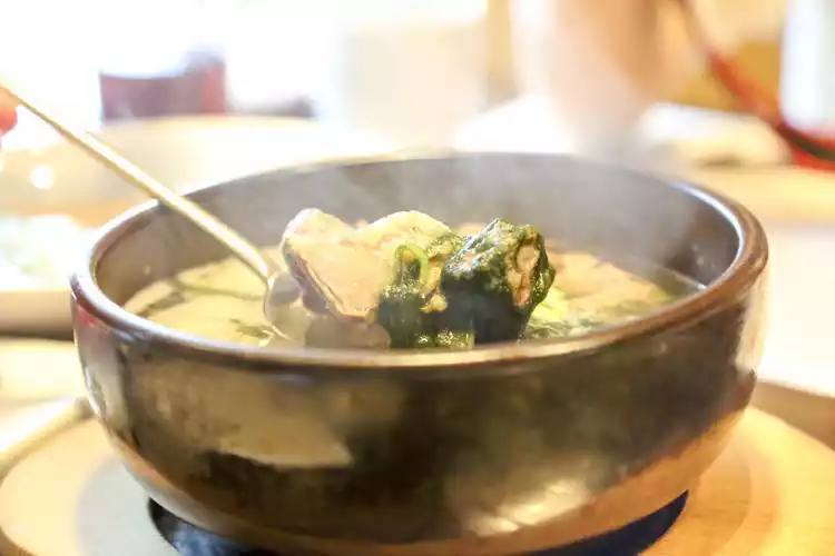 Each bowl of ginseng chicken soup comes with a glass of ginseng wine, which is a great way to nourish yourself while you eat. Korean wines are not very strong, so it is not a big problem for female friends to drink a glass.