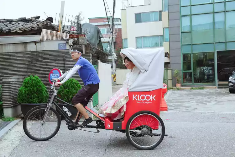 As mentioned earlier in the Hanbok experience, you can ride a rickshaw while wearing Hanbok. Rickshaw tours are available for tourists to explore scenic spots like Bukchon and Seochon. Rickshaw drivers provide interpretive guides as they navigate the streets and alleys. Not only can they communicate in English, but some drivers also speak Chinese, making communication seamless.