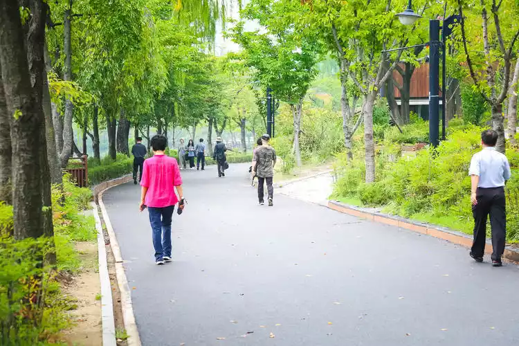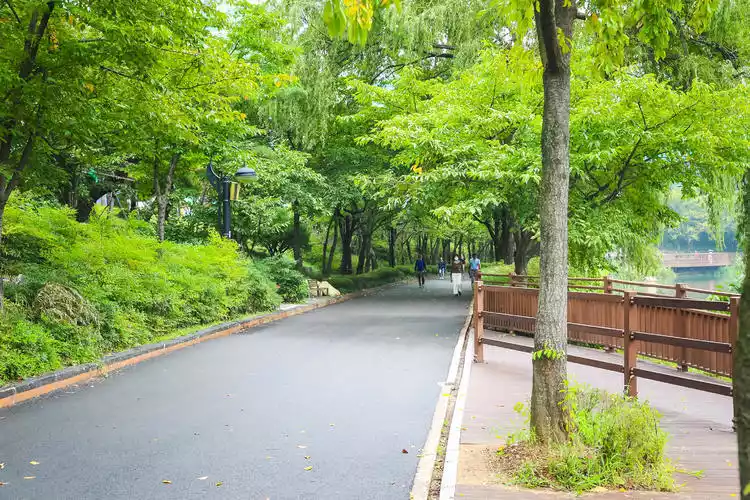 Just across the street from Lotte World Tower is Songpa Naru Park. Compared to the bustling scene at Lotte World, it's a much more tranquil spot. It's a popular spot for Seoul residents to relax, and you'll see many people exercising and relaxing in the park.