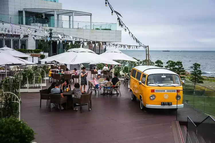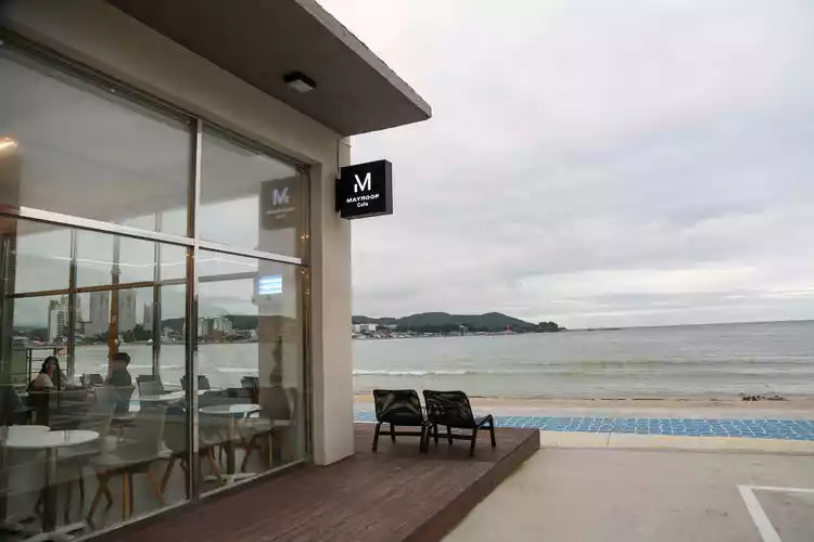 MAYROOF CAFÉ is a bit smaller and not very noticeable among the other buildings. However, it is right on the beach, so you can sit outside and enjoy the sea view while sipping coffee.