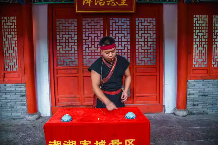 At the foot of the Red Mansion, this folk stunt master can spit fire dragons from his mouth, which makes tourists dumbfounded. I have only seen this stunt in my childhood memory, in a circus performance. Until now, I still don’t understand what they hold in their mouths?