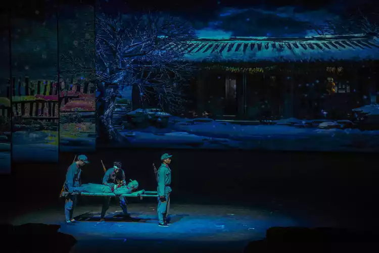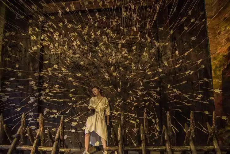The live-action war drama "Yingshanhong" is performed every day at the Hangzhou Paradise Grand Theater. This is a brand-new stage play by Songcheng. The performance uses advanced sound, light, electricity and stage technology to restore the fierce and cruel war scenes.