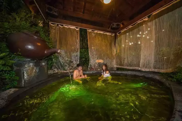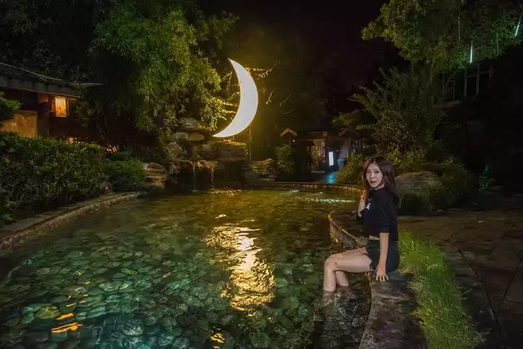 As the sky darkens, after a tiring day of sightseeing, relax at Yunman Hot Springs. Yunman Hot Springs is a bicarbonate hot spring, certified by national authorities as a medical-grade, low-sodium, radon-free hot spring. The water here is naturally natural and unique, boasting 33 pools across four distinct areas: the Rainforest Bubble Spring, the Original Soup Tribe, the Xiangju Flower House, and the Tianzhu Thatched Cottage.