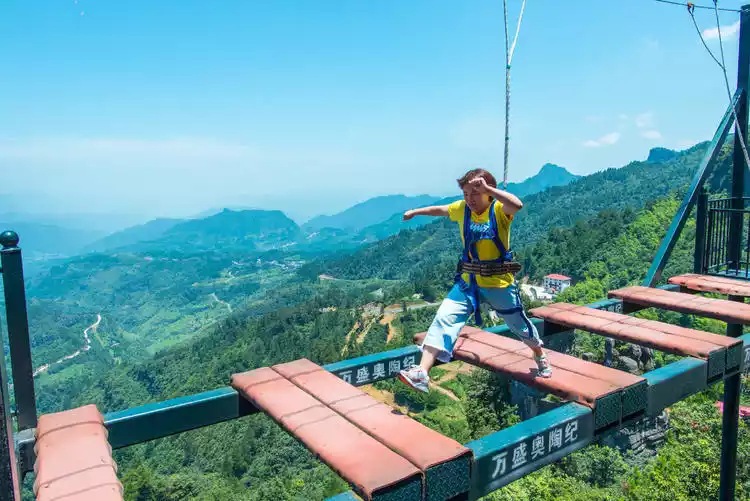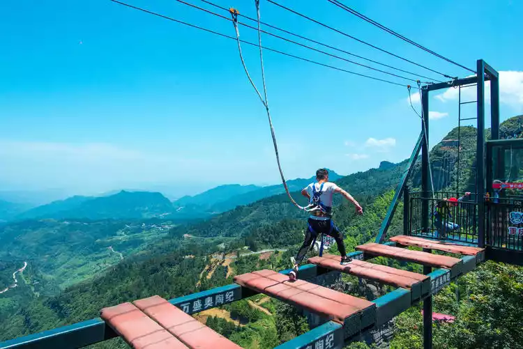 There are plenty of bungee jumping machines, but the cliff jump is a refreshing experience. Built right on the cliff face, you're directly facing a sheer drop of several hundred meters. The most terrifying moment is when, during the rapid descent, the seat suddenly moves forward, as if it's about to hit the cliff face. Although it doesn't hit the cliff face, the sensation of being shattered into pieces is breathtaking – a unique gift bestowed by free fall.