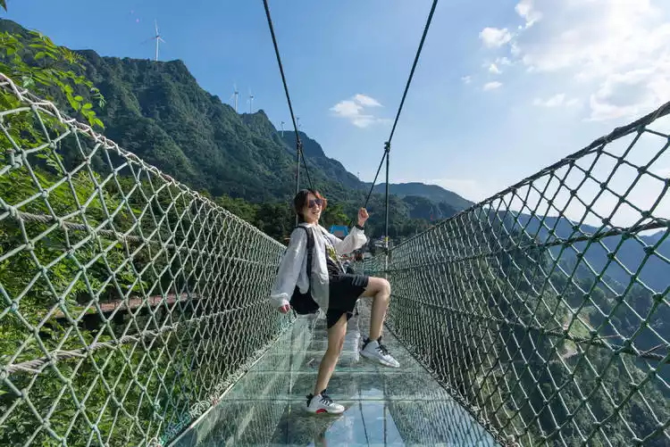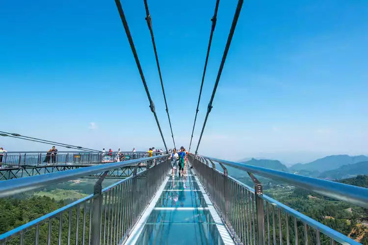 As the first fully transparent high-altitude glass suspension bridge in Southwest China, it's said to have frightened some people to tears. The 150-meter-long suspension bridge offers a unique perspective for appreciating the beauty of the karst landscape.