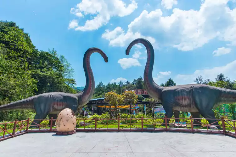 While not considered a high-altitude or thrilling attraction, Dinosaur Ice and Snow World is a must-see attraction in the Ordovician Scenic Area because it's home to numerous large dinosaurs. The majestic dinosaur sculptures stand tall in the mountains, making it feel like a trip back to the paleontological era.