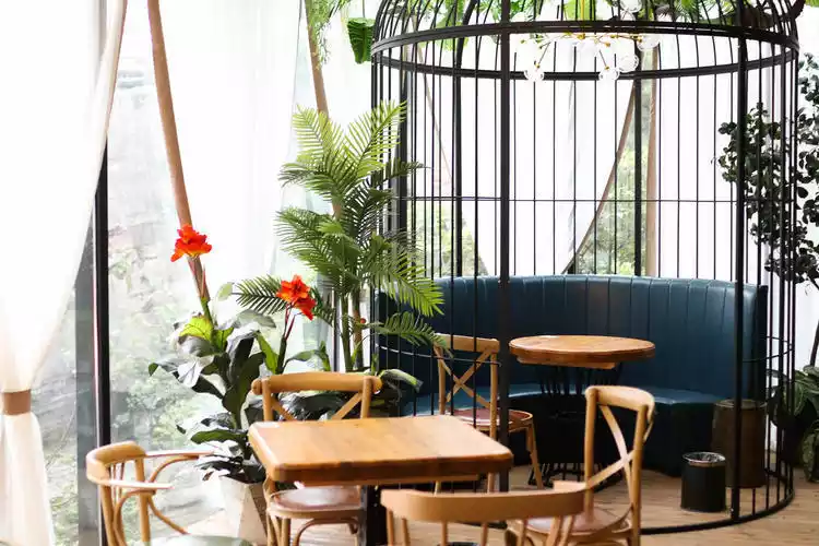 The interior decoration is mainly in a simple wooden style, fresh and natural, and very comfortable to live in. The large floor-to-ceiling windows allow sunlight to shine through the glass onto the bed and the courtyard above the clouds, starting a pleasant vacation time.