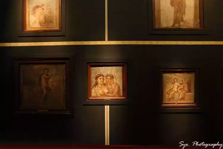 The secret room displays various sexual statues, including one of a shepherd god with malicious intent towards a female goat, as well as nine paintings depicting sexual positions, which clients used as reference materials for requesting sexual services. This is a showcase for tourists of the prostitution culture of Pompeii at the time.