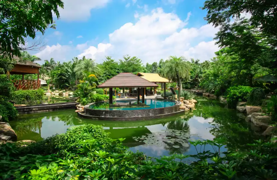 Tianmu Xiamen Xingbowan Hot Spring Resort is located on the hot spring island in the Xiamen Garden Expo Park, a national AAAA-level scenic spot, with a unique regional location.