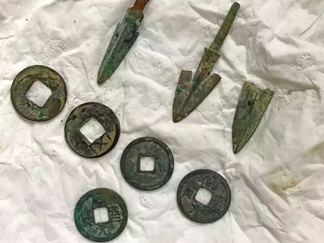 The picture below shows the Wuzhu coins of the Han Dynasty, the Kaiyuan Tongbao coins of the Tang Dynasty, and arrowheads, indicating that the currency of the time was still in circulation in Loulan during the Han and Tang Silk Road period.