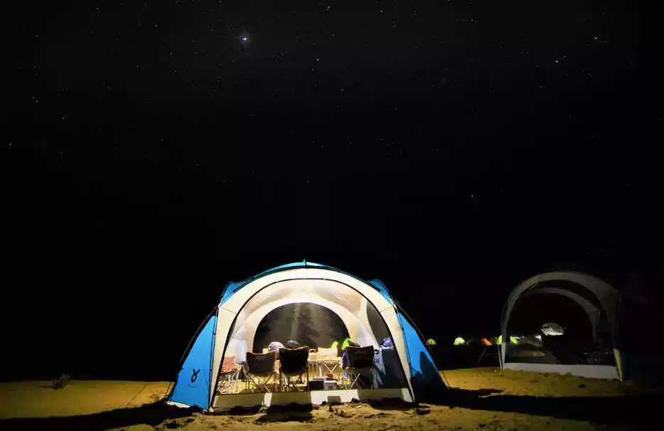 The best local hotel, single and double outdoor tents to choose from, each person is provided with a moisture-proof mat and sleeping bag, and there is a professional outdoor windproof tent for every 12 people.