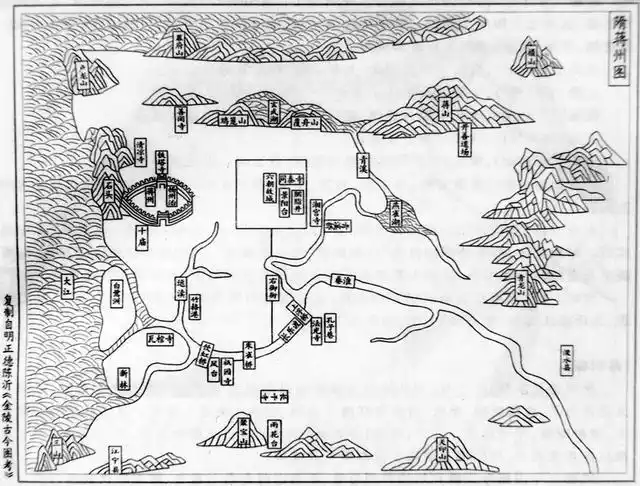 ▲Map of Jiangzhou during the Sui Dynasty (Stone City and the Yangtze River can be seen on the left)