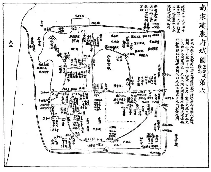 ▲A map of Jiankang Prefecture during the Southern Song Dynasty (Jinling Town and Shitou City are visible on the left, with the Yangtze River having moved westward)