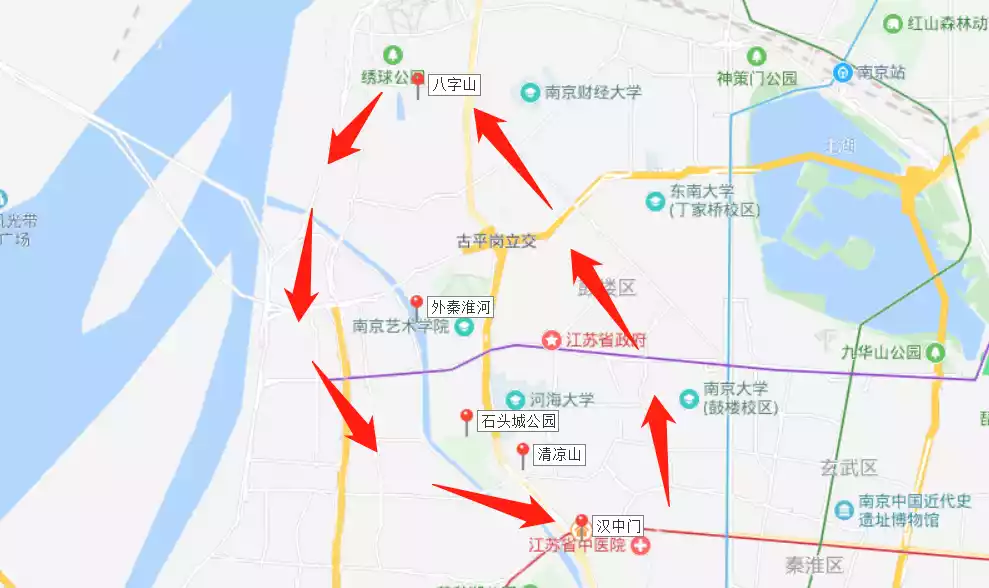▲The scope of academic discussion on the location of Stone City in Nanjing