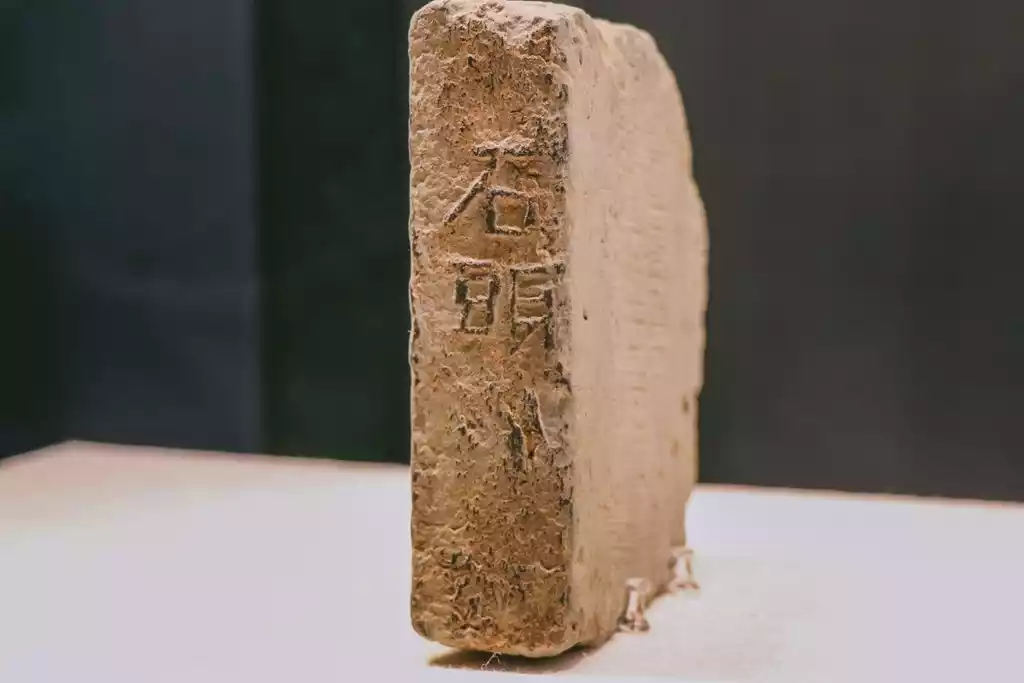 ▲The word "stone" is printed on the bricks and is now in the collection of Nanjing Museum.