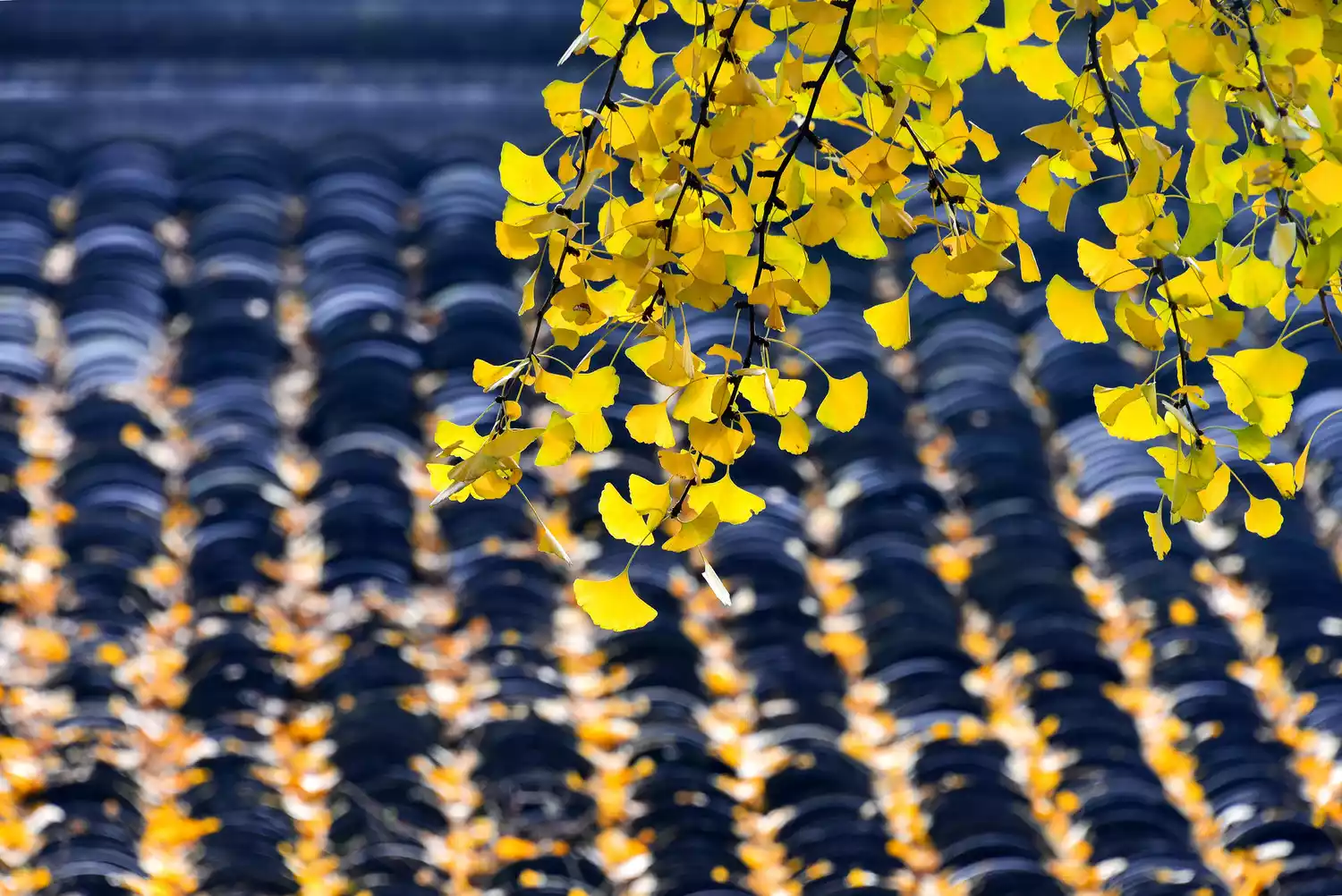 ▲Three hundred ginkgo trees are showing off their beautiful figures in the sunshine in late autumn.