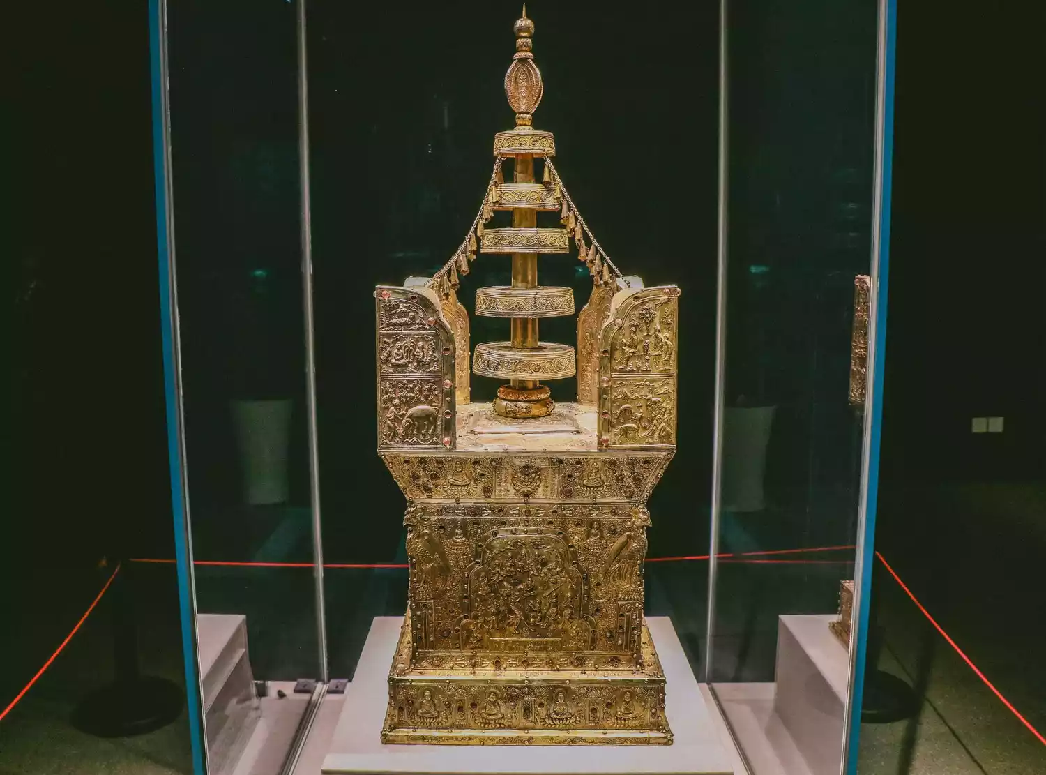 ▲The gilded seven-treasure Ashoka Pagoda, now in the collection of Nanjing Museum