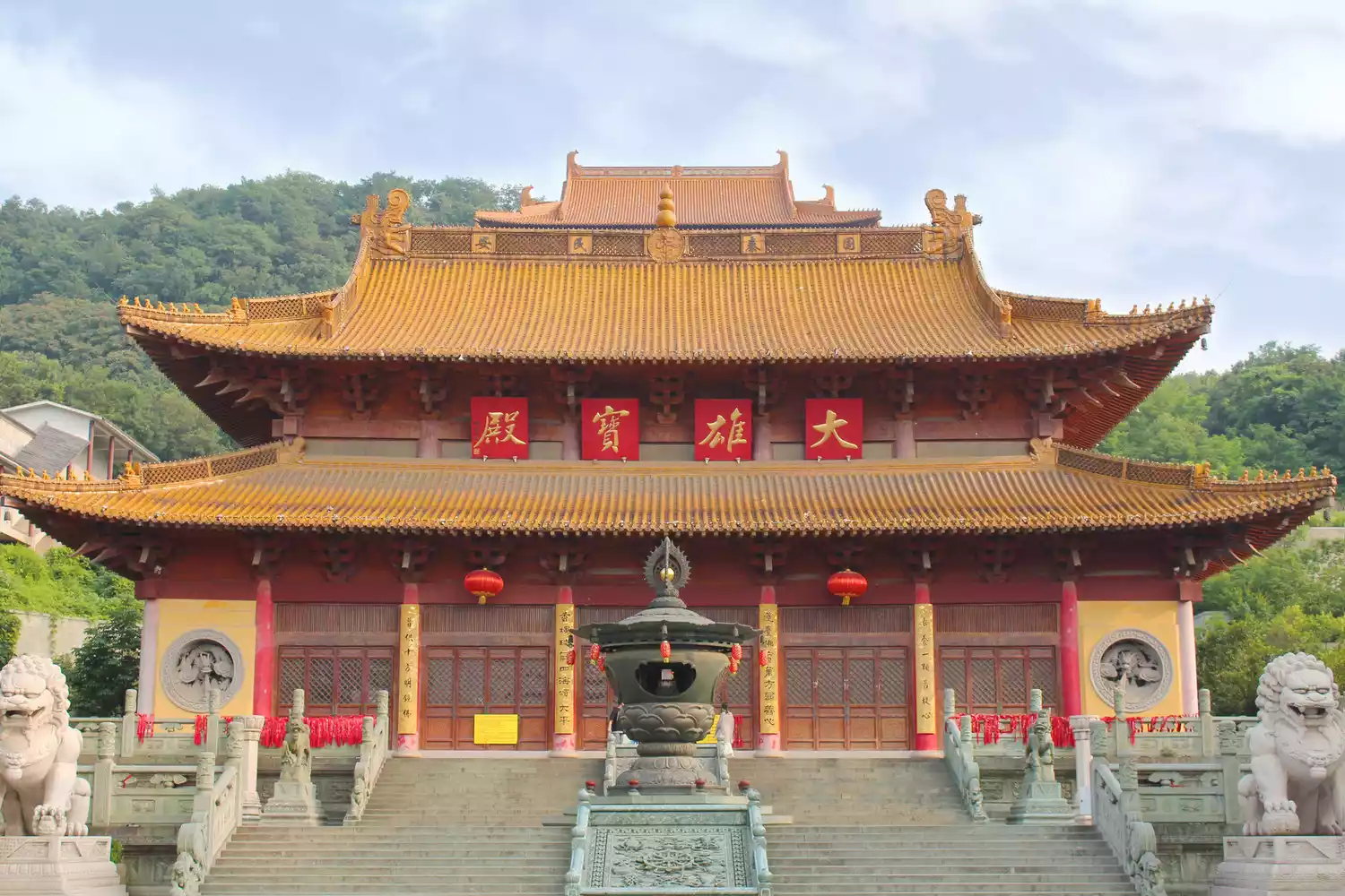 Hongjue Temple is nestled against Niu Shou Mountain, facing Yuntai Mountain, and surrounded by mountains on both sides, enjoying an ideal location. At the southern foot of the mountain lies the Second Tomb of the Southern Tang Dynasty, currently the largest underground palace in Jiangnan.