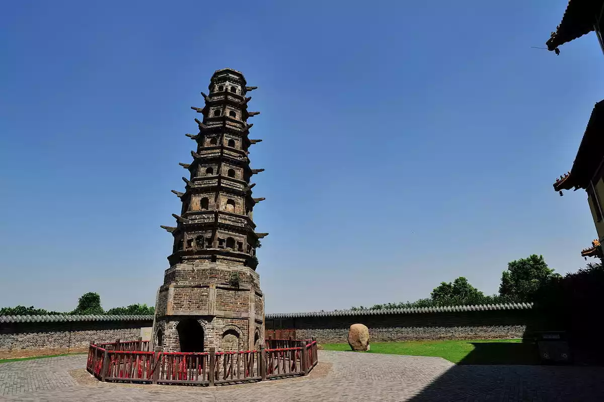 The Hongjue Temple Pagoda was first built in 774 AD during the ninth year of the Dali reign of the Tang Dynasty. Legend has it that it was built by Emperor Daizong Li Yu in response to a dream. It was later destroyed, and the current pagoda was rebuilt in the early Ming Dynasty. The Hongjue Temple Pagoda stands 25 meters tall, with seven levels and eight sides, and is built of brick. Each side features a pot-shaped door and two small windows, and each floor boasts carved wooden eaves.