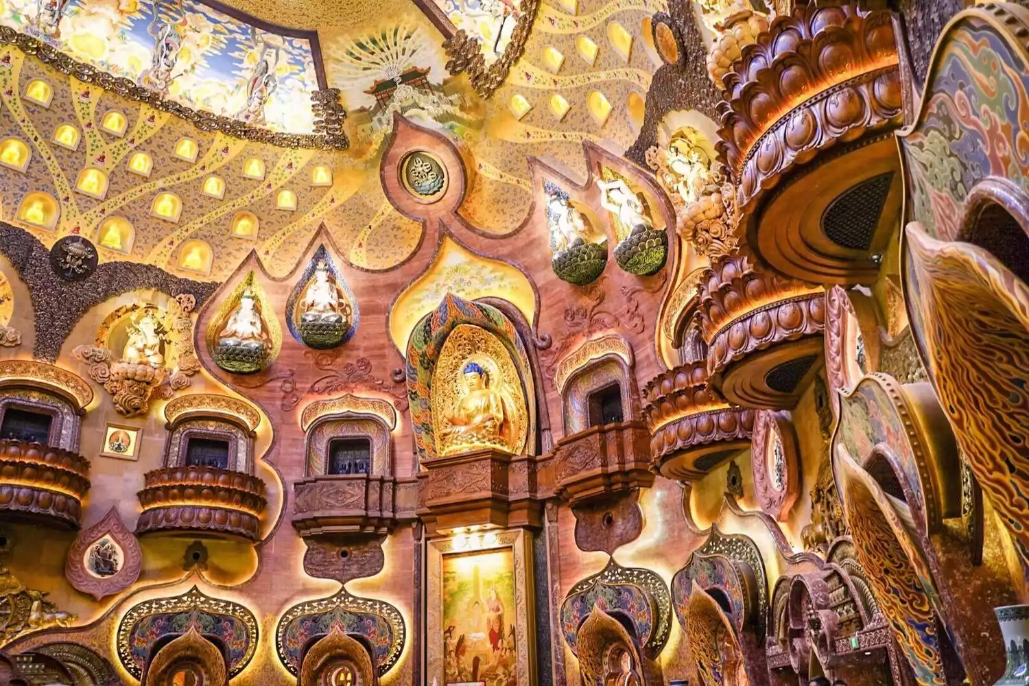 The Buddha's Crown Palace is not a single dome, but is designed as a skylight-like space with straight lines from top to bottom. The reclining statue of the Buddha in the center is the most shocking, and visitors can admire it from multiple angles.