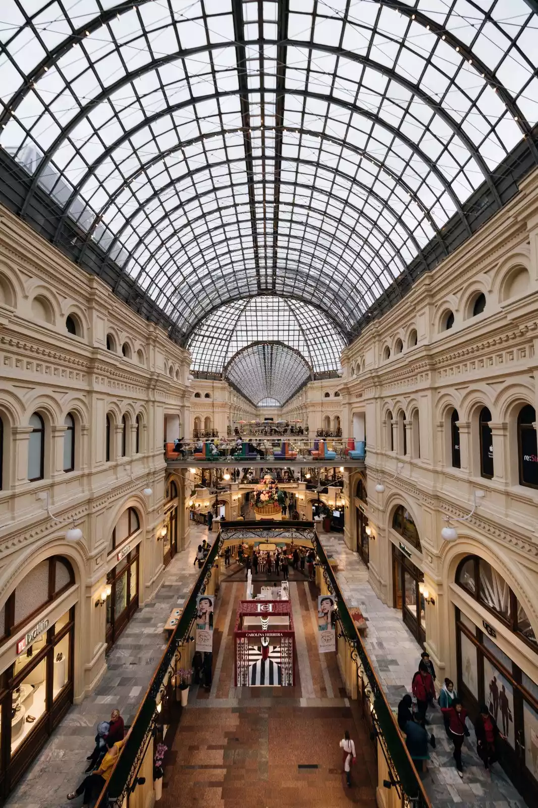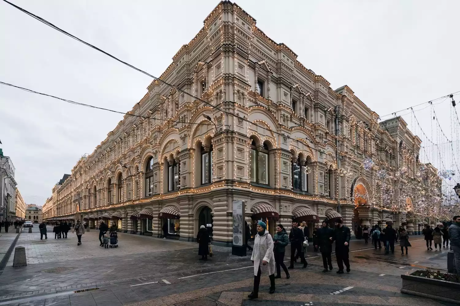 GUM is located on the east side of Red Square, facing the Kremlin. It is one of the world's top ten department stores. The beige building in the classical European style and the colorful church next to it harmoniously form a beautiful landscape on Red Square.