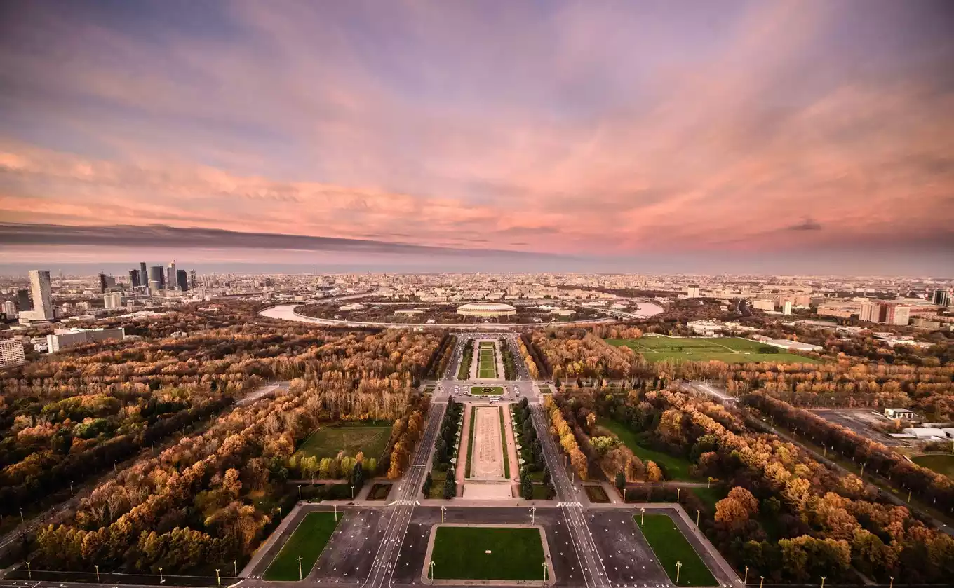 Sparrow Hills, located in southwest Moscow, is the highest point in the city. At 220 meters above sea level, it's not particularly high, but it offers stunning views of the city from a height. The Moscow River flows through the foot of the hill, and behind the observation deck is Moscow State University. From the observation deck, you can see buildings such as Stalin's Seven Sisters. During the World Cup, the Luzhniki Stadium at the foot of the hill is also a place for fans to celebrate.