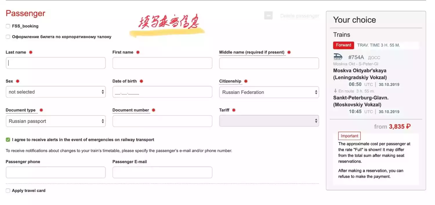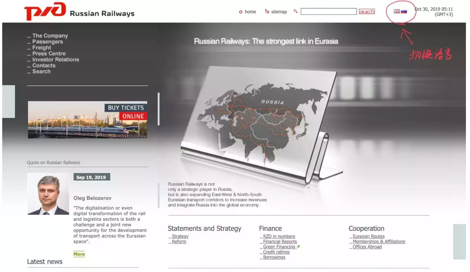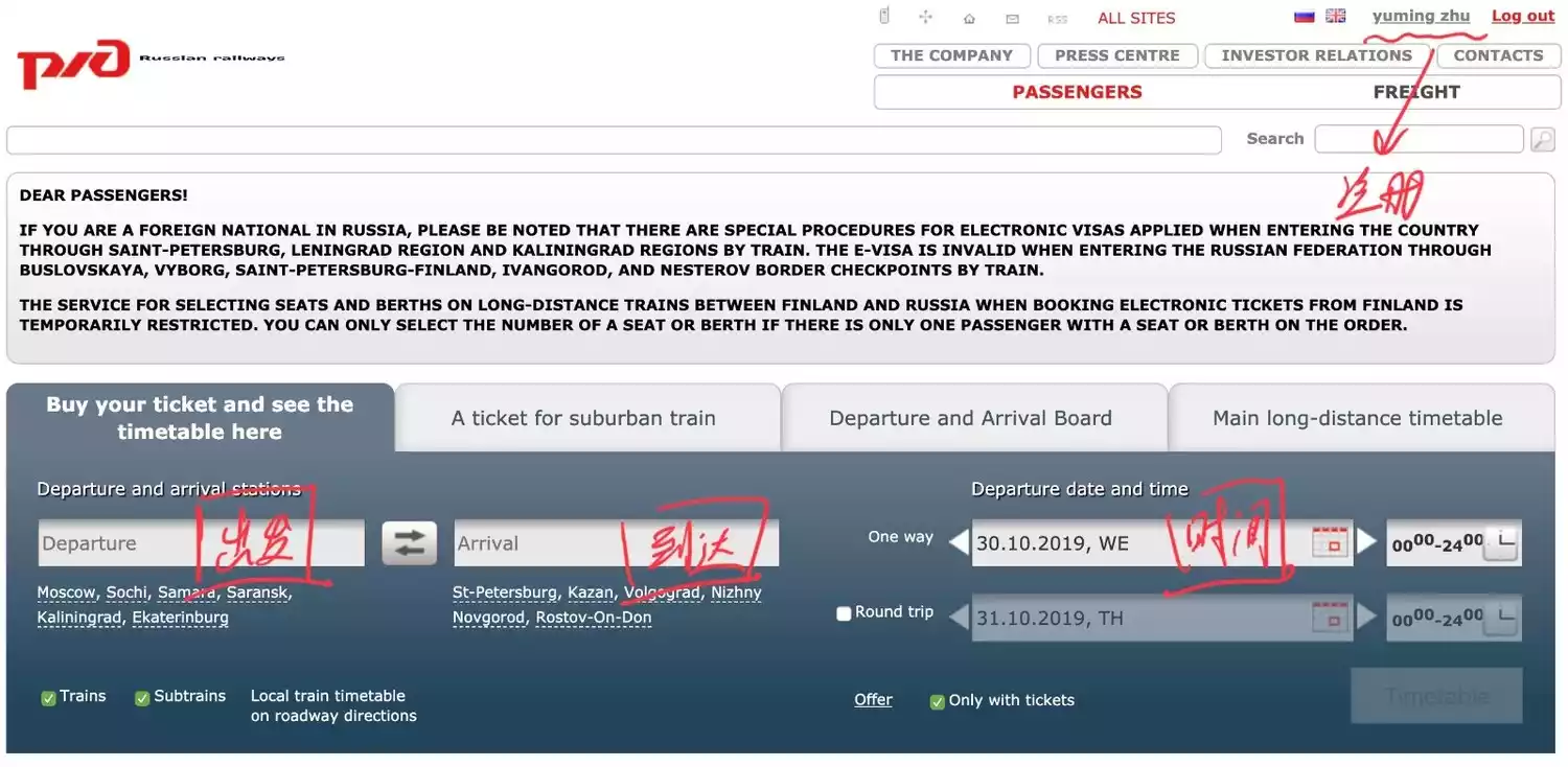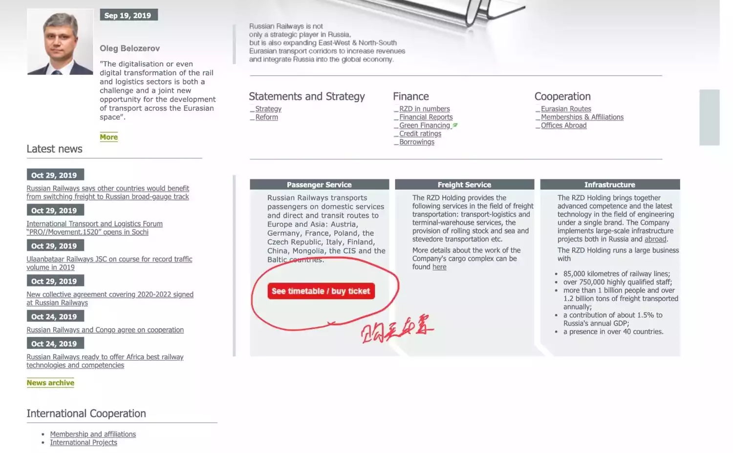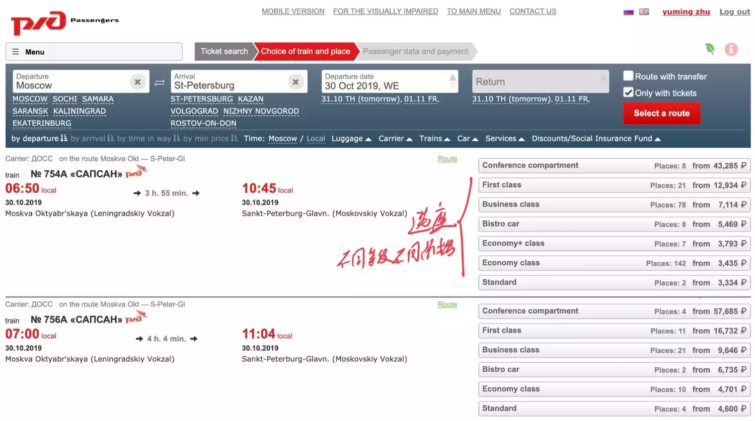 To buy high-speed rail tickets, go to the official website of Russia's high-speed rail: http://www.rzd.ru/, click the British flag in the upper right corner to switch to English.