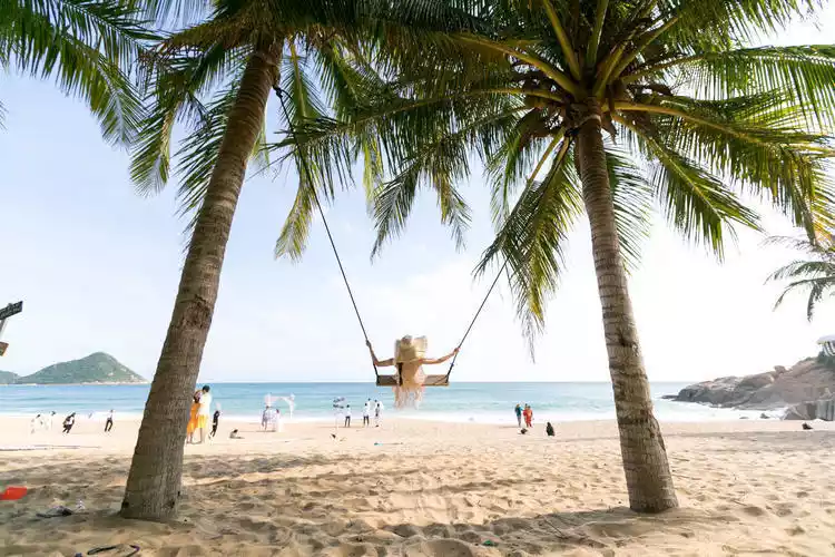 The beach of Daidai Island has fine sand and blue water. There are also coconut swings, vintage cars, white churches, ancient fishing boats, etc.