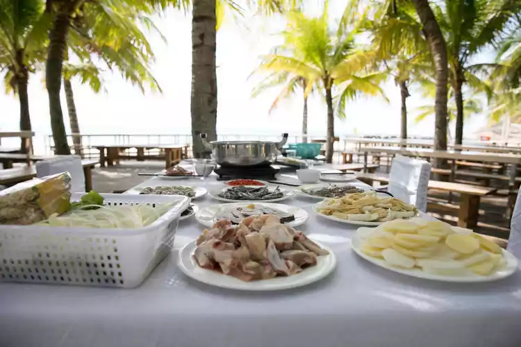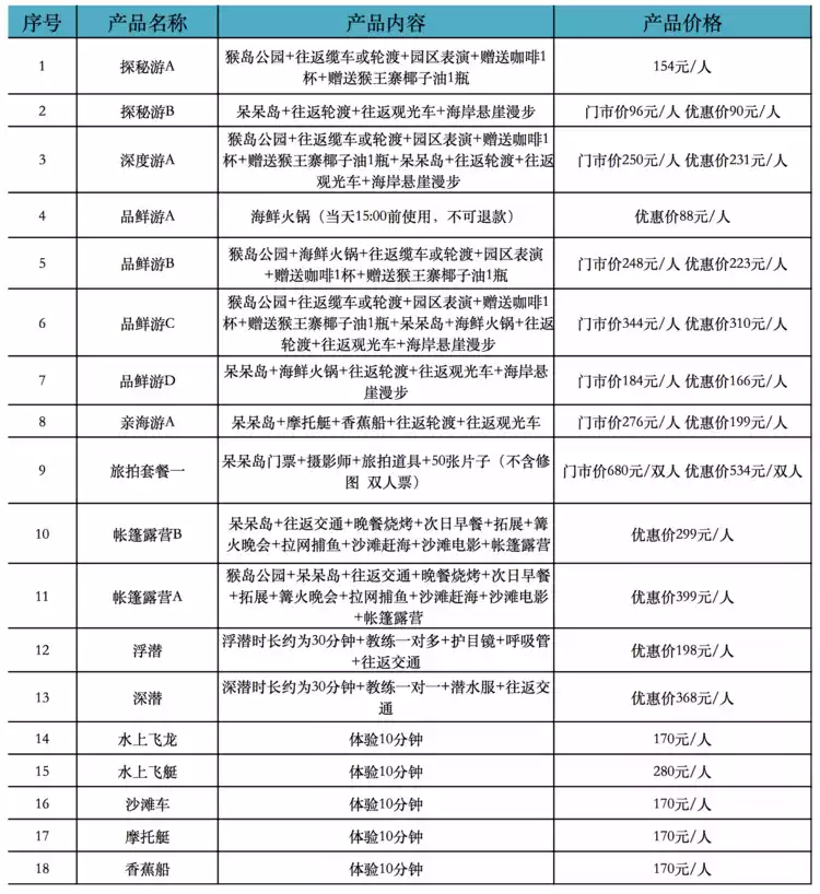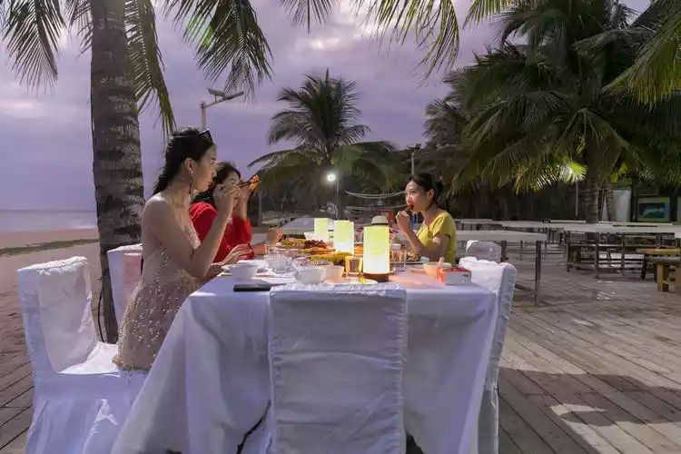 2. The scenic area offers a wide range of high-end, mid-range, and low-end cuisine. Light meals include instant noodles, snacks, and drinks. You can order dishes at the Monkey Island Seaview Restaurant at the entrance to Monkey Island. For dinner, there's a beach seafood hotpot, which can be ordered on-site or online.