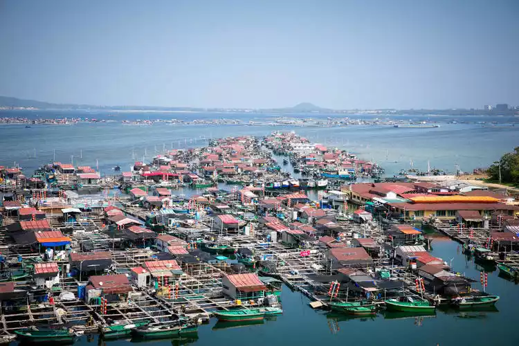 Numerous Xujia fish farms are moored in Monkey Island Harbor. The Xu people use their boats as beds and the water as blankets, fishing exclusively near the coast. At night, the lights on the fish farms light up, adding a touch of warmth to the dark sea.