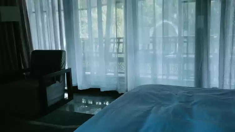 The interior design reflects the Jiangnan style everywhere, with thick dark wooden floors, vivid and exquisite embroidery, tapestries, spiritual art decorations, and the pleasant greenery on the terrace outside the door.