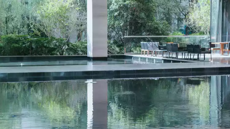 This place is called the meditation area. Opposite the chair is a wall and a pool of water, which is suitable for sitting quietly and daydreaming.