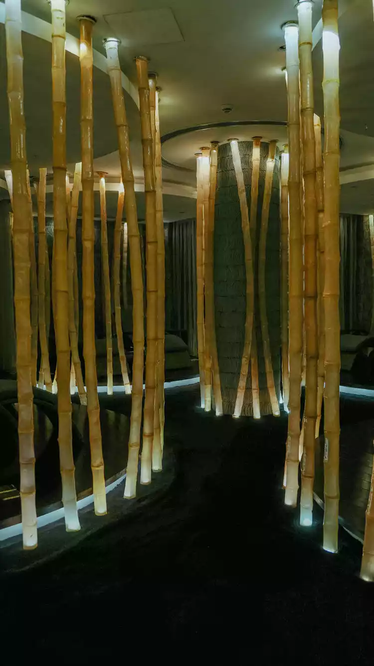 While waiting for the elevator, my attention was attracted by several strangely shaped "columns" next to me. The staff explained that the outer shells of these lamps are made of environmentally friendly materials, and the light is lit from the inside, which is soft and not dazzling, and full of artistic sense.