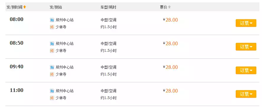 ② Take a bus from Zhengzhou Bus Station to Dengfeng, and then take a taxi or bus from Dengfeng City: Buy a ticket at "Zhengzhou Bus Station" and take a bus to "Dengfeng Bus Terminal". After exiting the station, wait on the roadside for Bus No. 8 (this bus goes directly to the gate of Shaolin Temple) to Shaolin Temple (14 kilometers). The ticket price is 5 yuan, and the taxi fare is about 30 yuan.