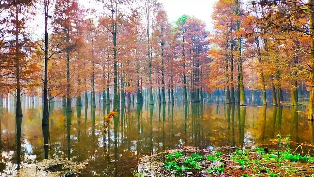This wetland park at the junction of Jiangsu and Anhui provinces is known as the largest pond cypress lake forest in East China. With the shadowy shadows of pond cypress and the chirping of forest birds, it is like the "water forest" of the Amazon River.