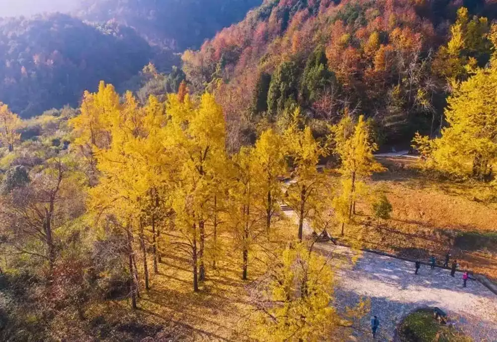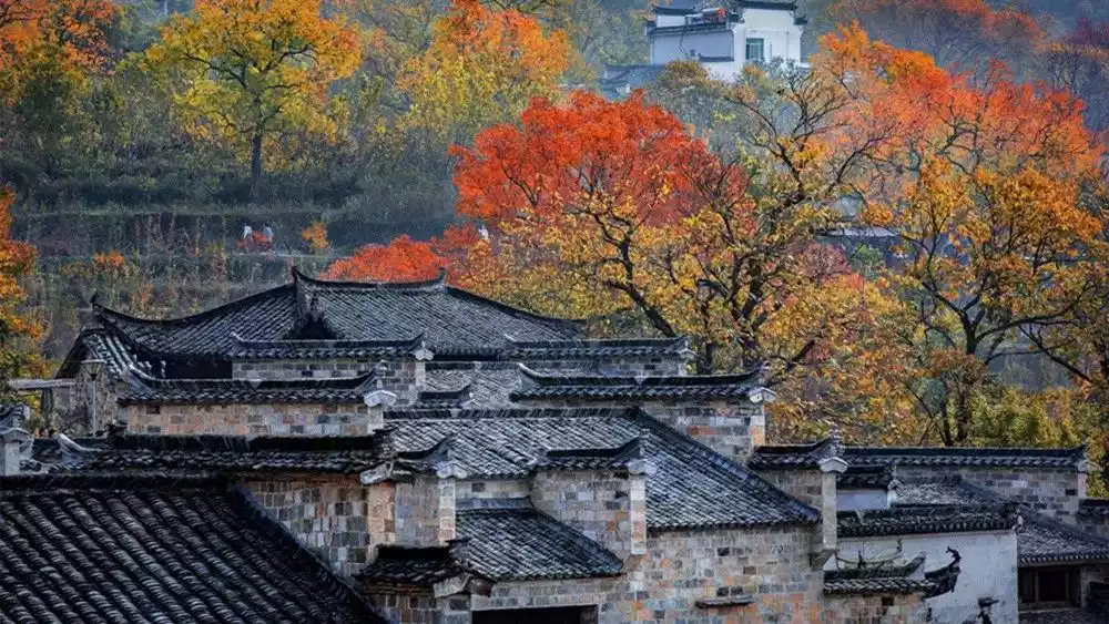 Every autumn, ginkgo trees and red maples turn their colors in turn, making Zhinan Village a vibrant spectacle. It is one of the most beautiful autumn viewing spots around Hangzhou.