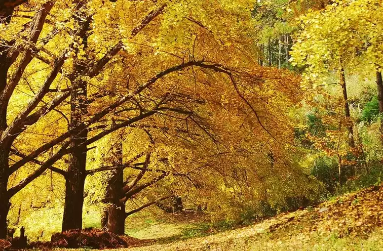The Ocean Ginkgo Forest is located in Haiyang Township, Lingchuan County, Guilin. Home to one million ginkgo trees, the forest blankets the mountains with leaves, transforming them into a golden sea, reminiscent of a fairytale fantasy world. The falling of a single leaf heralds the arrival of autumn, and the fluttering of leaves across the mountains in the autumn breeze heralds the arrival of deep autumn. Over 500,000 of these trees are ancient, the oldest over 500 years old, and over 17,000 are over a century old. The largest, the "Ginkgo King," towers 30 meters, its trunk requiring six people to hug. In late autumn, gentle breezes sweep the leaves, creating a vibrant display of golden leaves. The fallen leaves, both on and off the trees, resemble flakes of gold, creating a unique autumn scene, accompanied by the sight of children and elderly gathering leaves beneath the trees. This breathtaking spectacle only lasts for about two weeks each year, attracting tourists from all over the world to capture the beautiful moment with their cameras.