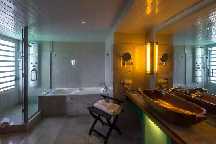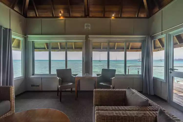 Each water villa is a suite, complete with a bedroom, living room, and bathroom, and each room is exceptionally spacious. The minimalist design of the rooms reflects the local atmosphere, and the wide ocean views are particularly commendable. The pleasure of sleeping by the ocean every night shouldn't be reserved just for couples.