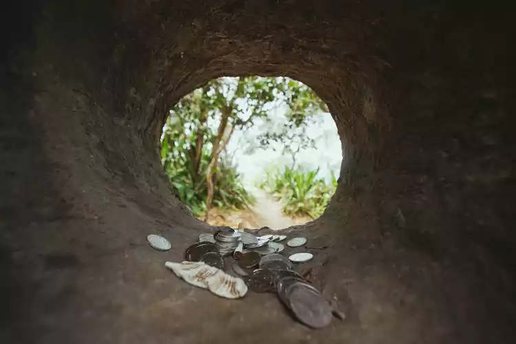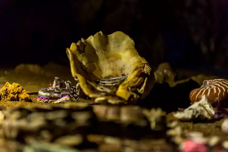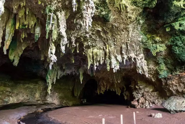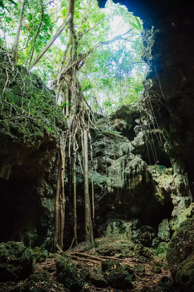 The location pictured below is the entrance to a cave where food was once delivered to the chief's daughter. She later escaped from the cave, traveled to Noumea, learned French, and married a young man from the same tribe. Her husband later became the chief, and she became the queen. Deeply loved by her people, this cave has become a scenic spot on Pine Island.