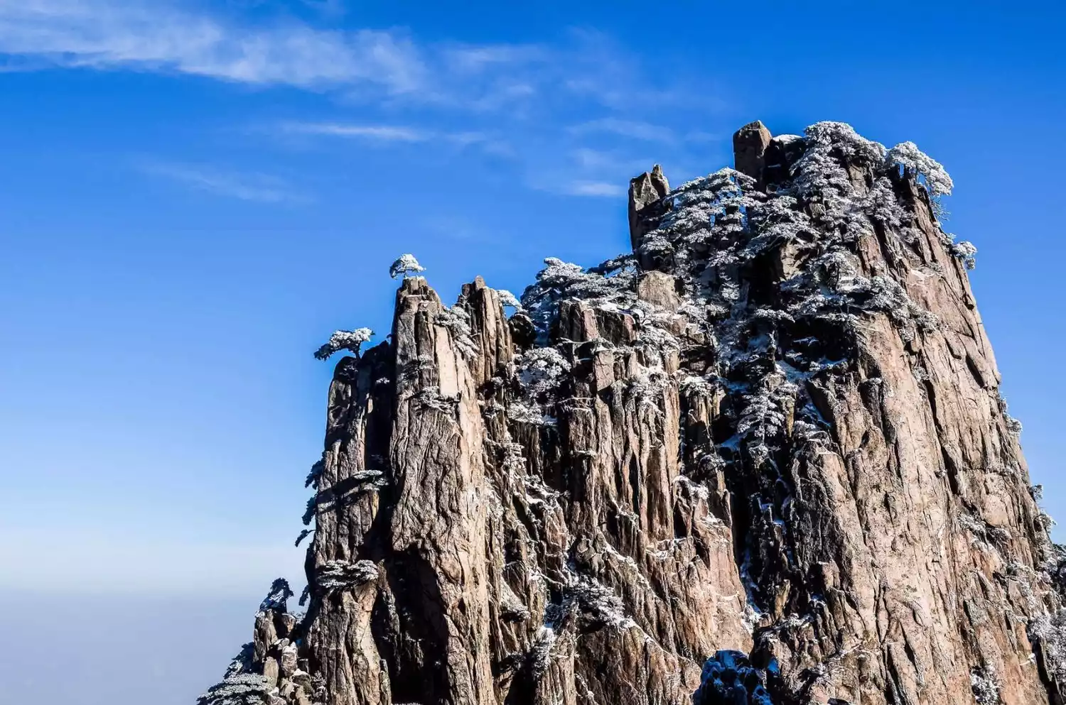 Unlike visiting Huangshan in spring and summer, the once lush green mountains and beautiful waters were bruised by the harsh winter, withered grass and withered sun, creating a rather bleak and chilling feeling. However, if you haven't experienced Huangshan in winter, you haven't truly been to Huangshan.