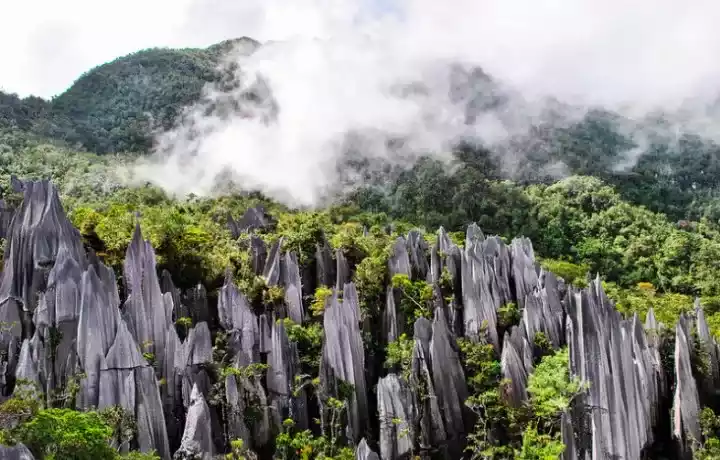 Marvel at the bare mud volcanoes and the lush green forests surrounding them.