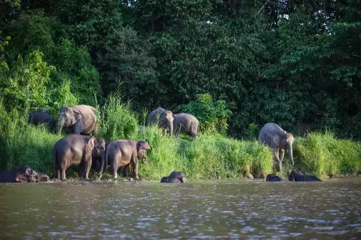 This magical biological paradise is home to 10 species of primates (including more than 1,000 orangutans and proboscis monkeys), more than 300 species of Borneo pygmy elephants, more than 50 species of mammals, more than 20 species of reptiles, more than 300 species of birds and more than 1,000 species of plants...including some rare and protected animals.