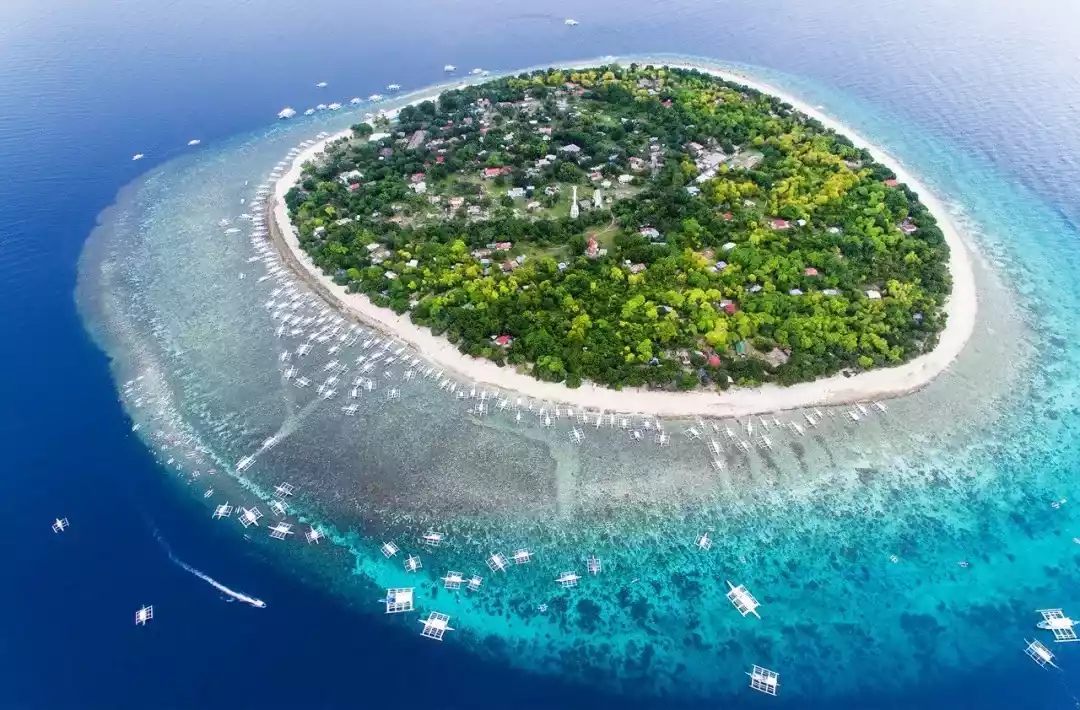 Seen from the air, Balicasag Island looks more like a giant eye floating on the sea, with blue and green irises and yellow pupils.