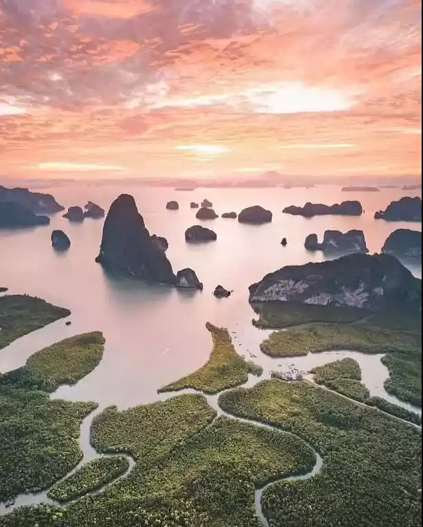 Phang Nga Bay is located in the northeast corner of Phuket Island. Because of its karst landform, it is known as "Little Guilin".