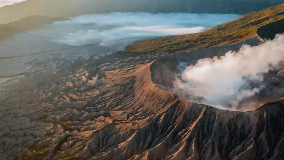 Mount Bromo, considered the most beautiful volcano in Indonesia and a highly photographed sight, is also considered Indonesia's most mysterious and violent volcano. Located in eastern Java, it is an active volcano, with chimneys and steam rising from its crater, and eruptions are common. Local residents have built a Hindu temple at the foot of the mountain, where they hold a month-long annual ritual.