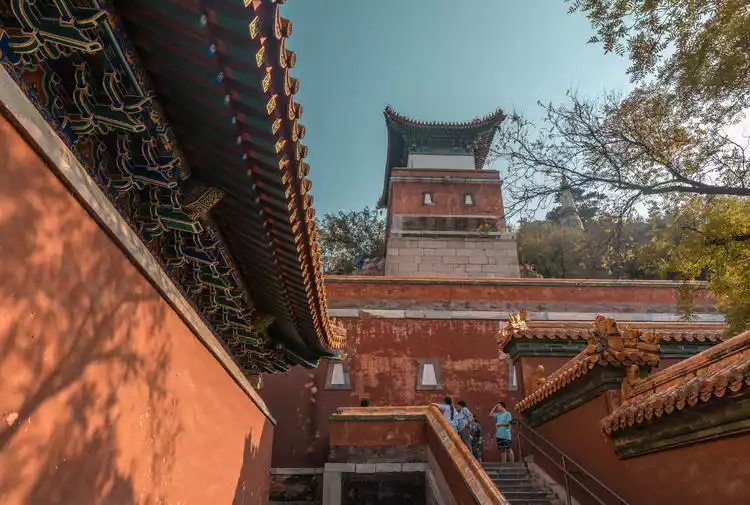 There are many buildings on Wanshou Mountain, especially Tibetan Buddhist buildings, which are full of religious feeling. These buildings perfectly interpret the classic colors of Beijing: red walls and orange tiles.