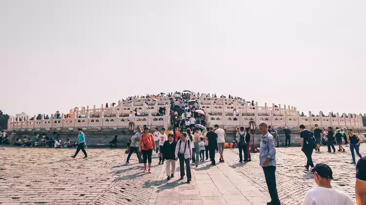 During holidays, people even have to queue up to climb the Circular Mound Altar. Everyone lines up to step on the stone slab in the center of the altar to get some blessings.