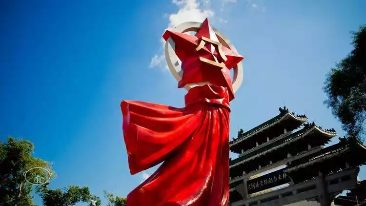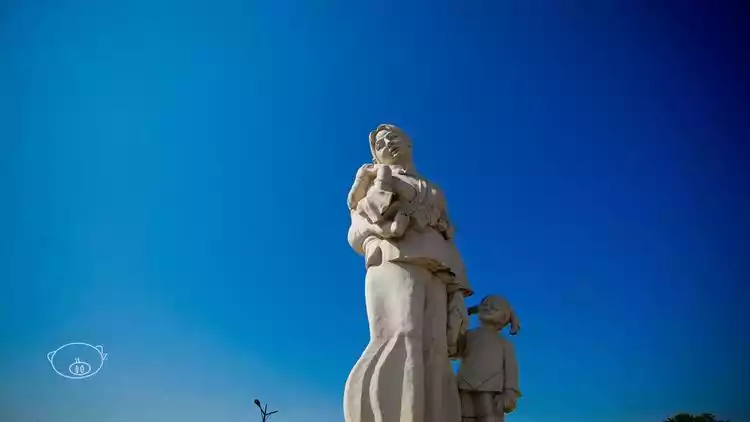 [Environment] Walk along the embankment to the landmark sculpture at the source of the Han River—a stone sculpture of the "Hakka Mother." Standing 9.8 meters tall and weighing 136 tons, the statue depicts a hardworking and kind Hakka woman with her hair tied in a bun, carrying a man and a woman on her back. Facing the Sleeping Beauty Mountain in the distance, the statue offers a breathtaking view of the confluence of three rivers.
